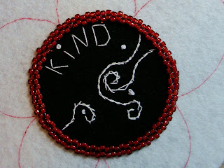 When you see Cindy's cuff on, it looks like studded leather thanks to the use of the matte black beads. Mine, not so much, but I do like the way the pattern that surrounds the center cupcake on mine looks like two sideways crowns. Not that I think I'm the queen of anything, but it reminds me of the crown of my mantra "Keep Calm and Carry On". Pretty neat.